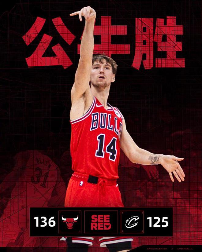 進入末節比賽,公牛連續四節單節轟下30+得分,也是連續兩節單節轟下35+得分,騎士進攻火力暴跌比第三節少得到18分,并且是本場第二次單節不足30分。公牛用團隊攻勢壓制騎士逐步擴大14分領先優勢,且持續保持兩位數領先優勢,最終公牛136-125戰勝騎士。