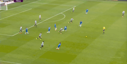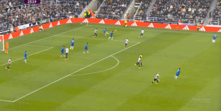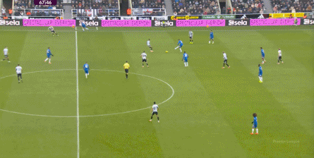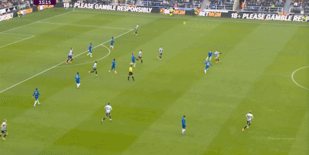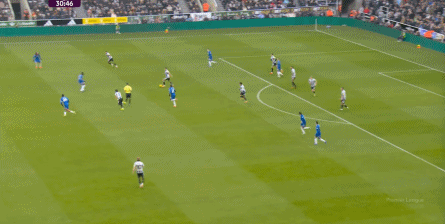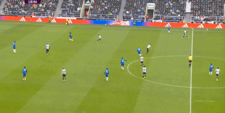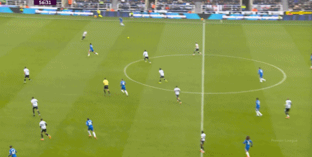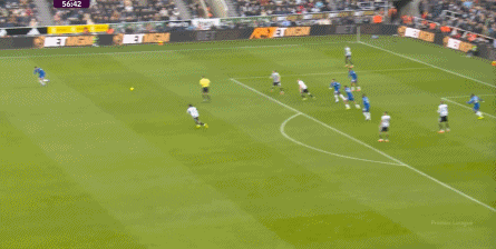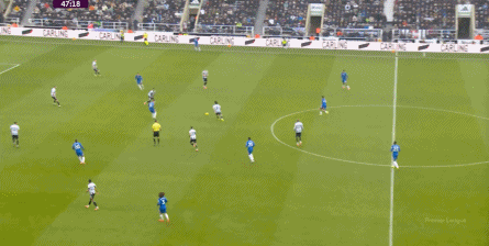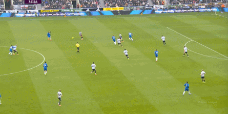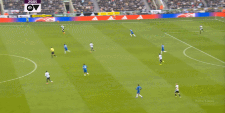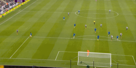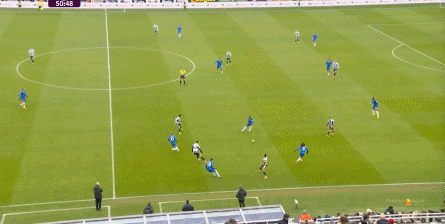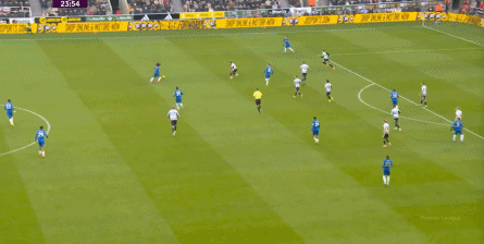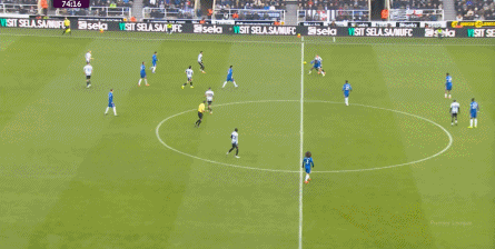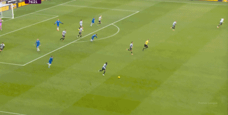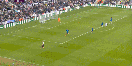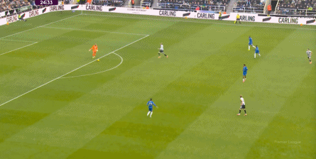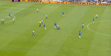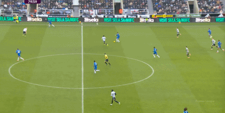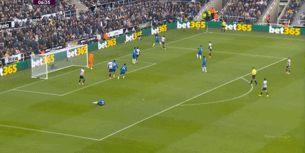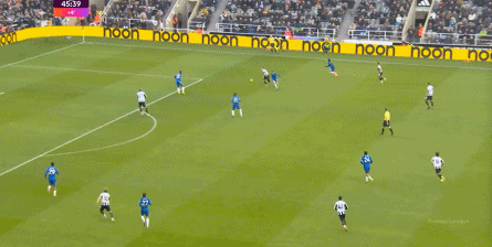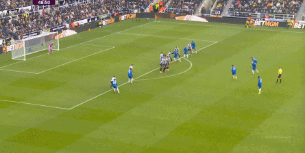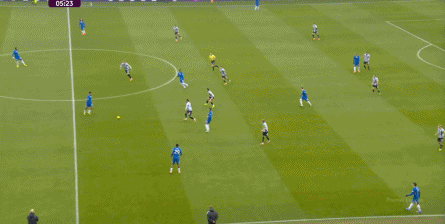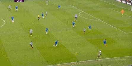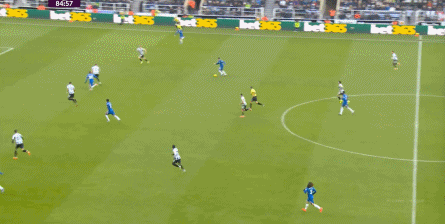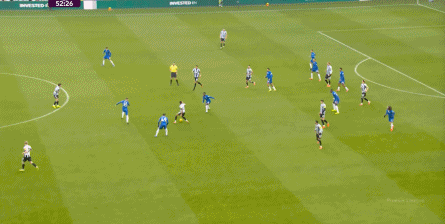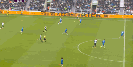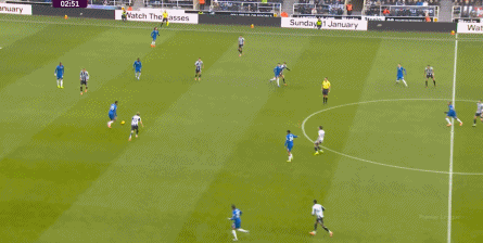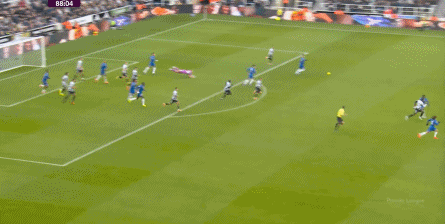 在此之后,切爾西又獲得了一次左側射門的機會,過程中你可以看到,紐卡斯爾的高大后衛們已經控制不住切爾西的鋒線活動了: