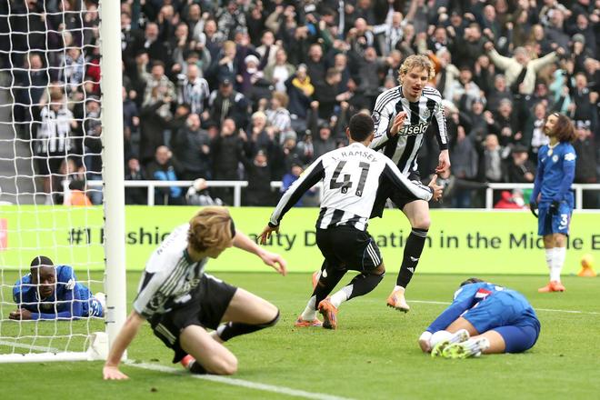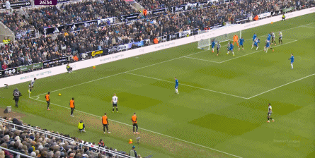 而在下半場回來,紐卡斯爾送上任意球,里斯-詹姆斯罰中,將比分縮小到了一球: