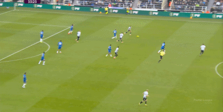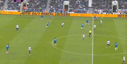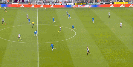 然而在比賽第16分鐘,切爾西出現了自己在陣地防守時的第一次明顯問題,不僅被紐卡斯爾順利推進到前場: