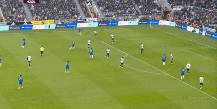 這當然是切爾西后場壓力很大的時候,但紐卡斯爾的后場壓力也會很大,而在上半場,切爾西從未得到過類似互捅的機會。