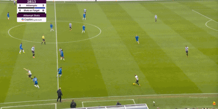 所以在本場比賽,紐卡斯爾在排除傷病等因素之后,還是排出了一套很有沖擊力的陣容,所以在開場短短3分鐘后,球隊便利用搶斷和傳中,早早收獲進球: